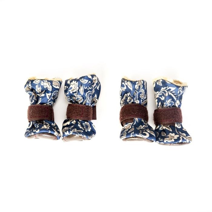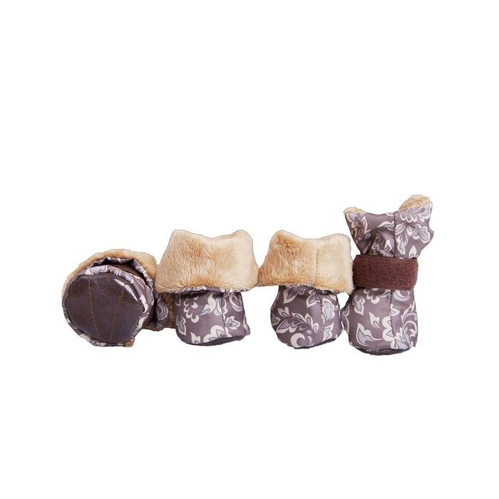 Модные тёплые ботиночки из синтетического материала с водоотталкивающей пропиткой и подкладкой из мягкого плюшевого искусственного меха предназначены для защиты чувствительных лапок самых маленьких собак от холода и грязи, соли и реагентов, которые могут встретиться на дороге. Подошва утеплена синтепоном, поэтому животное будет чувствовать себя комфортно даже при крайне низкой температуре.