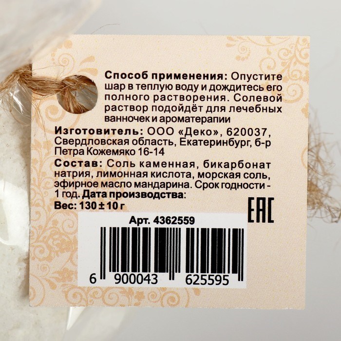 Бурлящий шар "Мой выбор" на основе Илецкой соли с эфирным маслом мандарина и добавлением морской соли, 140 г