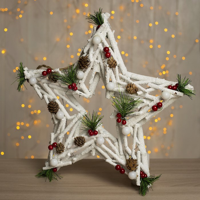 Фигура дерев "Звезда из белых веток" 40х6х40 см (3xAA не в компл.) 10 LED, ТЕПЛО-БЕЛЫЙ