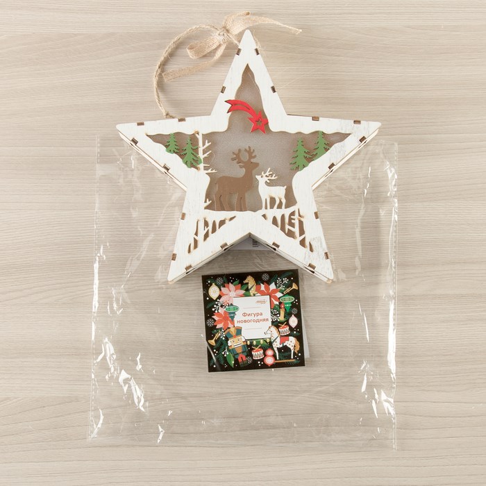 Фигура деревянная "Звезда Олени", 19х19х4 см, 2*AA (не в компл.) 5 LED, белая