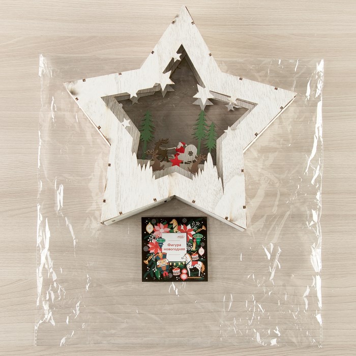Фигура деревянная "Звезда Сани с Оленями", 28х28х5 см, 2*AA (не в компл.) 10 LED