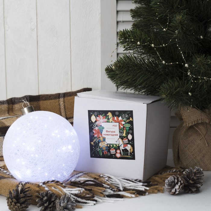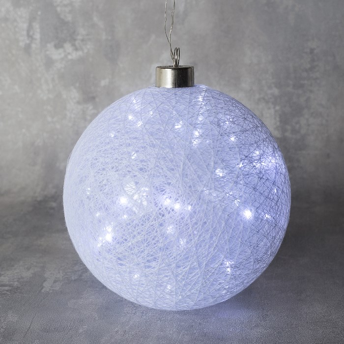 Фигура "Шар плетеный" 15 см, 50 LED-12V, нить белая, адаптер в комплекте, БЕЛЫЙ