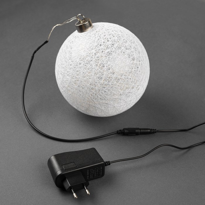 Фигура "Шар плетеный" 15 см, 50 LED-12V, нить белая, адаптер в комплекте, ТЕПЛЫЙ БЕЛЫЙ