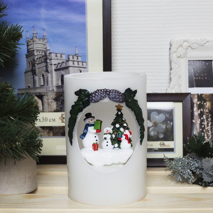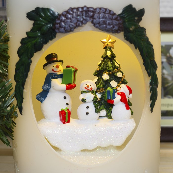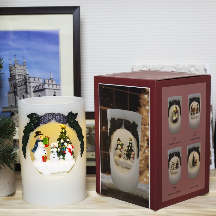 Фигура световая новогодняя свеча "Снеговики", 16х11х11 см, от бат 3*АА(не в компл.)