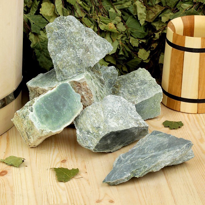 Камень для бани "Нефрит" колото-пиленный, "Добропаровъ" ведро 5кг, фракция 60-150мм