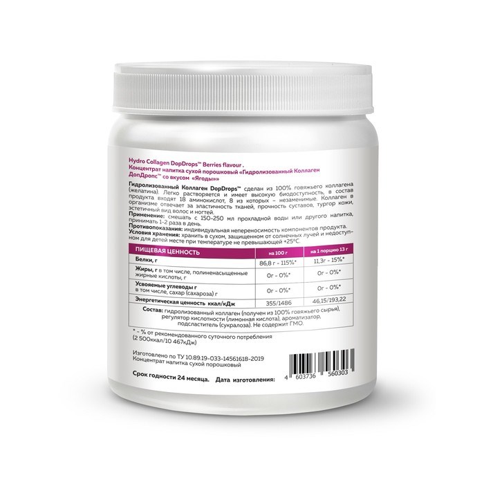 Когллаге DopDrops Hydro Collagen, фруктовый пунш, 455г.