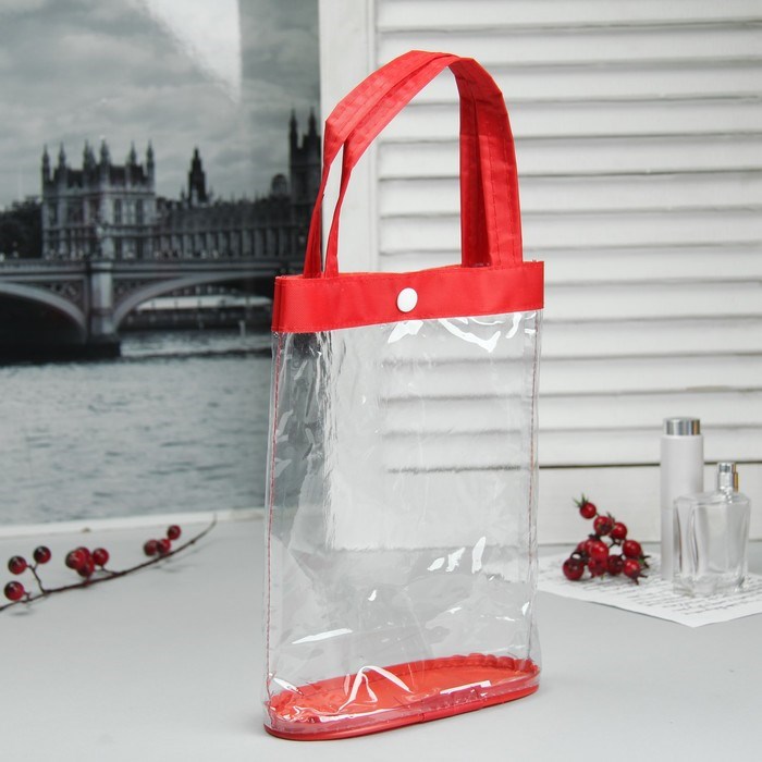 Косметичка ПВХ, отдел на кнопке, 2 ручки, цвет красный