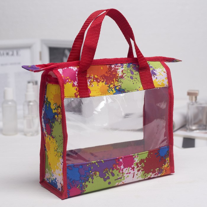 Косметичка ПВХ, отдел на молнии, 2 ручки, цвет красный