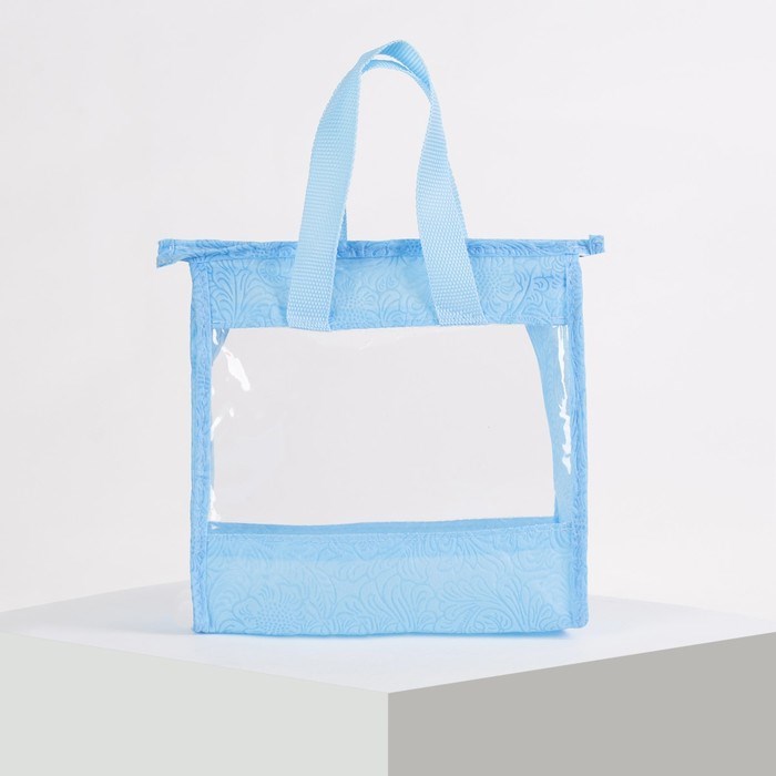 Косметичка ПВХ, отдел на молнии, цвет голубой