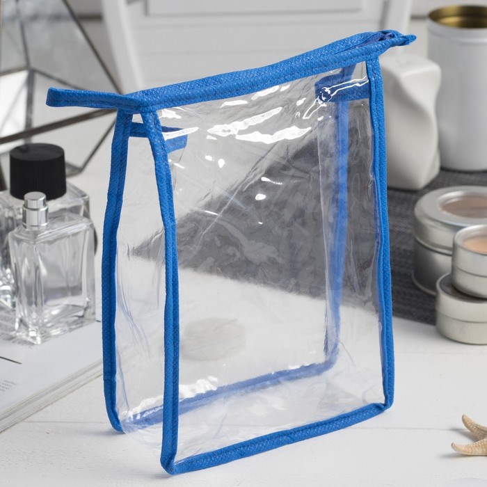 Косметичка ПВХ, отдел на молнии, цвет голубой