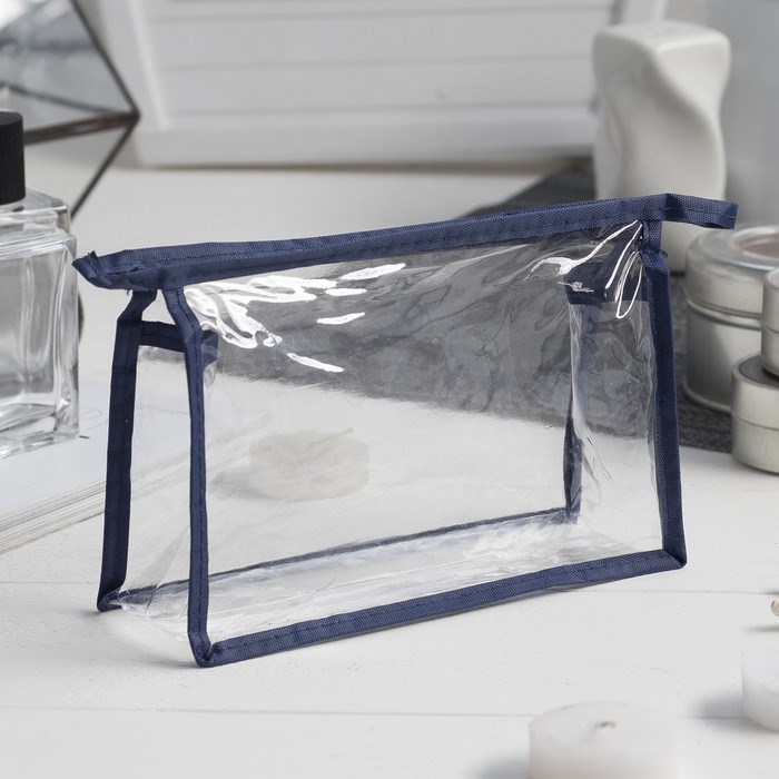 Косметичка ПВХ, отдел на молнии, цвет синий
