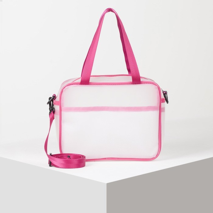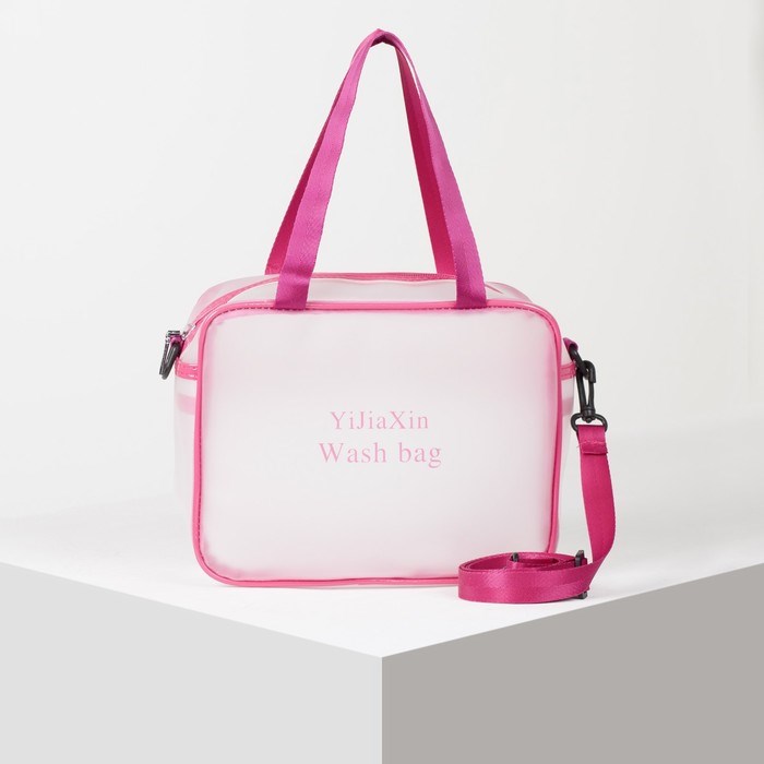 Косметичка ПВХ, отдел на молнии, длинный ремень, 2 ручки, матовая, цвет малиновый