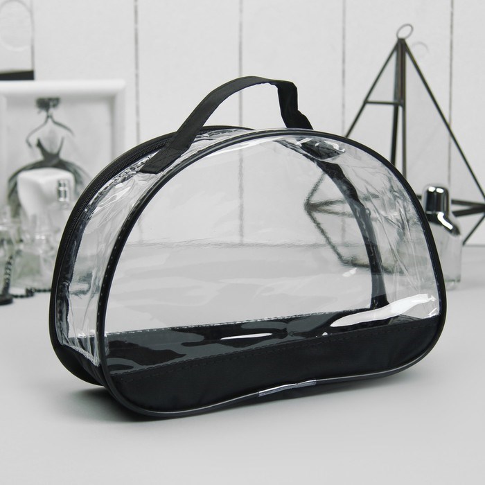 Косметичка ПВХ, отдел на молнии, с ручкой, цвет чёрный