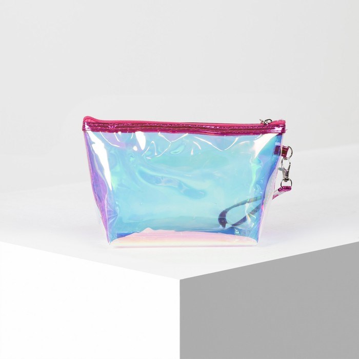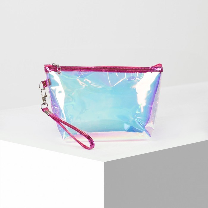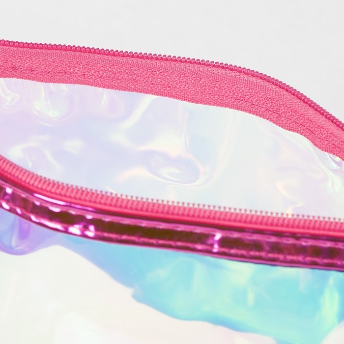 Косметичка ПВХ, отдел на молнии, с ручкой, цвет перламутр/малиновый