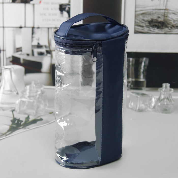 Косметичка ПВХ, отдел на молнии, с ручкой, цвет синий