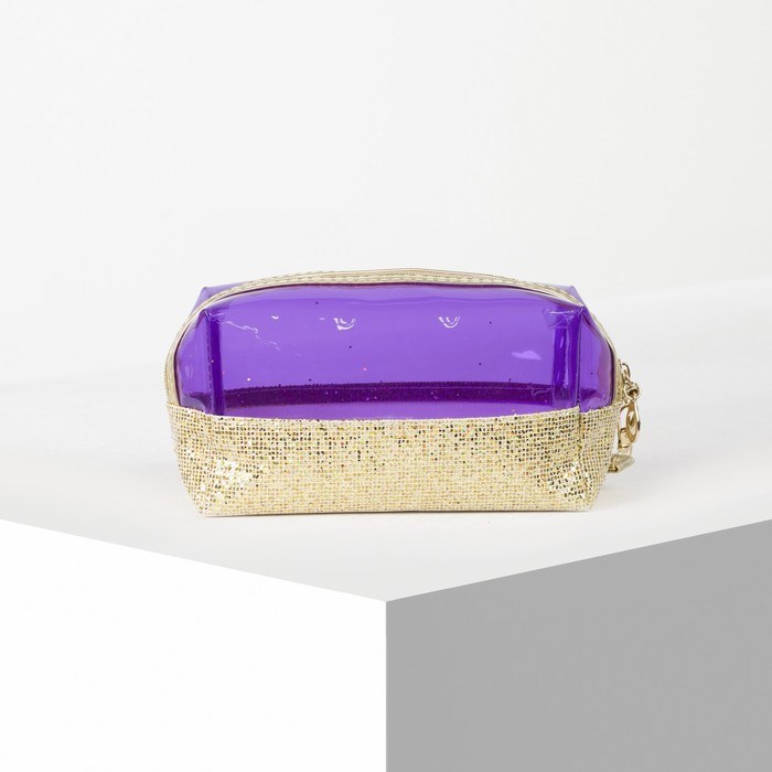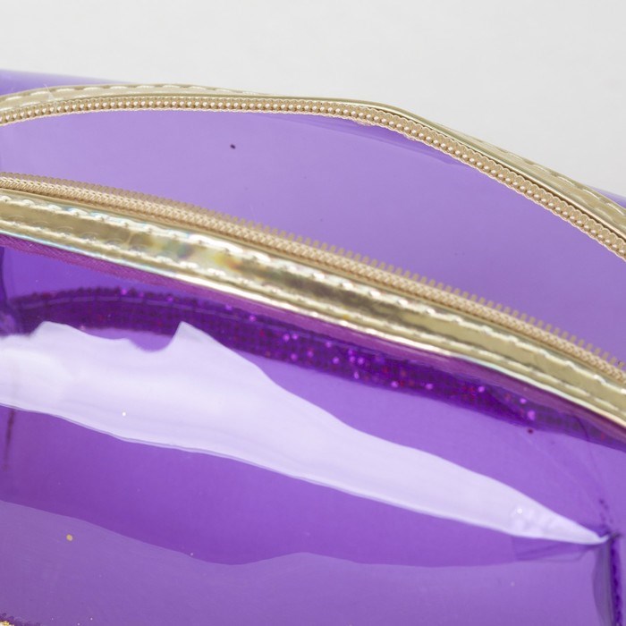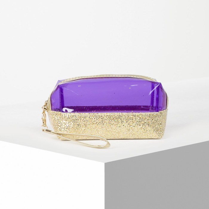 Косметичка ПВХ, отдел на молнии, с ручкой, цвет золото/фиолетовый