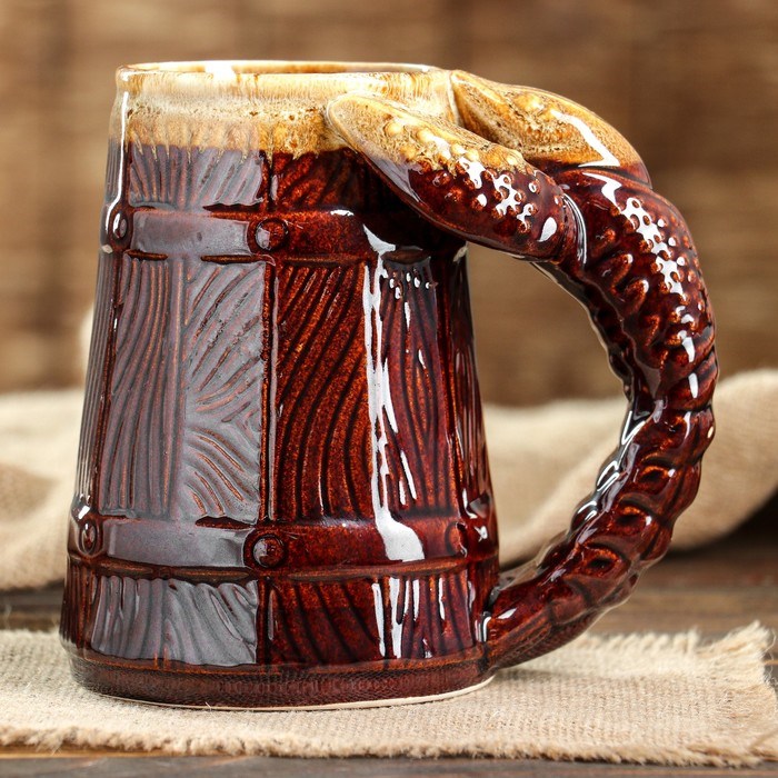 Такая кружка для пива отлично подходит для хмельных напитков. Благодаря термоизолирующим свойствам керамическое изделие надолго сохранит прохладу содержимого.