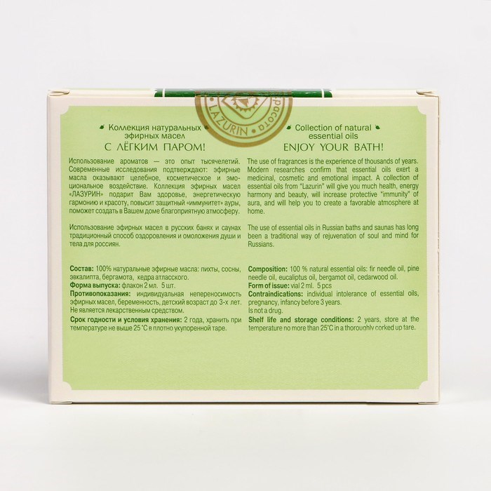 Набор эфирных масел "С лёгким паром", 5 шт: пихта, сосна, эвкалипт, бергамот, кедр х 2 мл