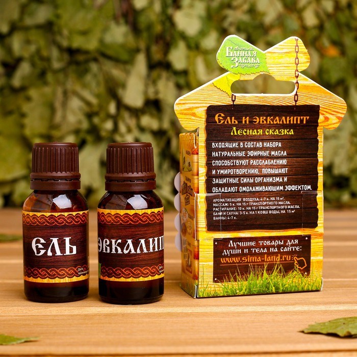 Испокон веков парная была местом, где люди очищались душой и телом, отдыхали и набирались сил. Не отступайте и вы от этой традиции. Чтобы жар и душистый пар пошли на пользу, возьмите с собой набор "Ель и эвкалипт": 2 эфирных аромамасла по 15 мл.