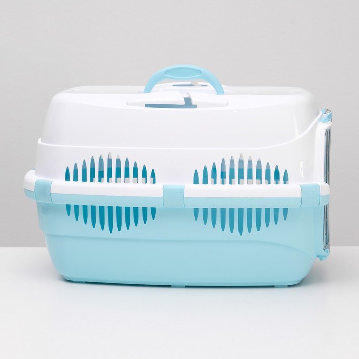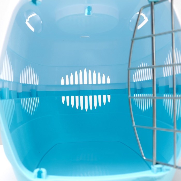 Переноска для животных до 12 кг "Пижон" 49х33х32см, металлическая дверь, бело-голубая