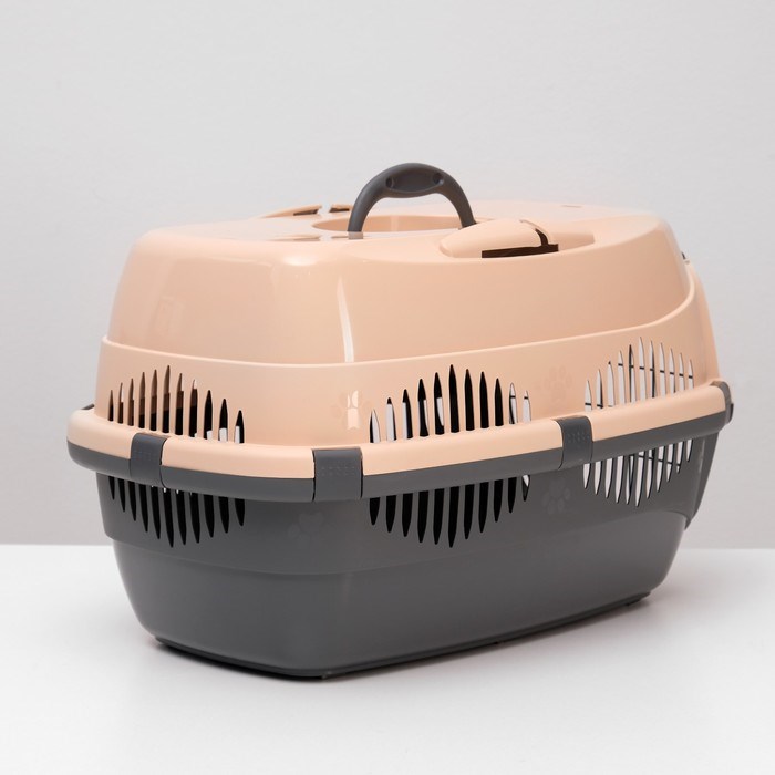 Переноска для животных до 12 кг "Пижон" 49х33х32см, металлическая дверь, бежево-серая