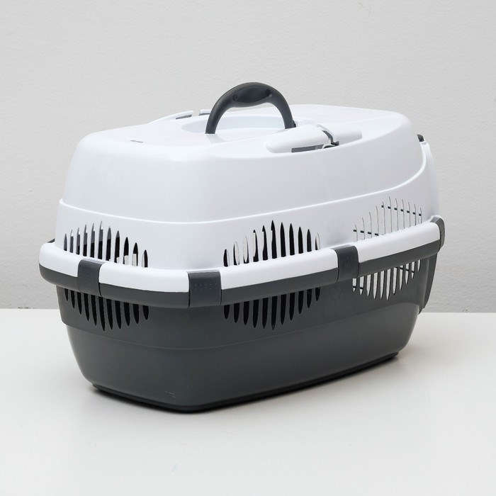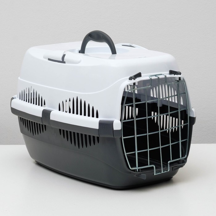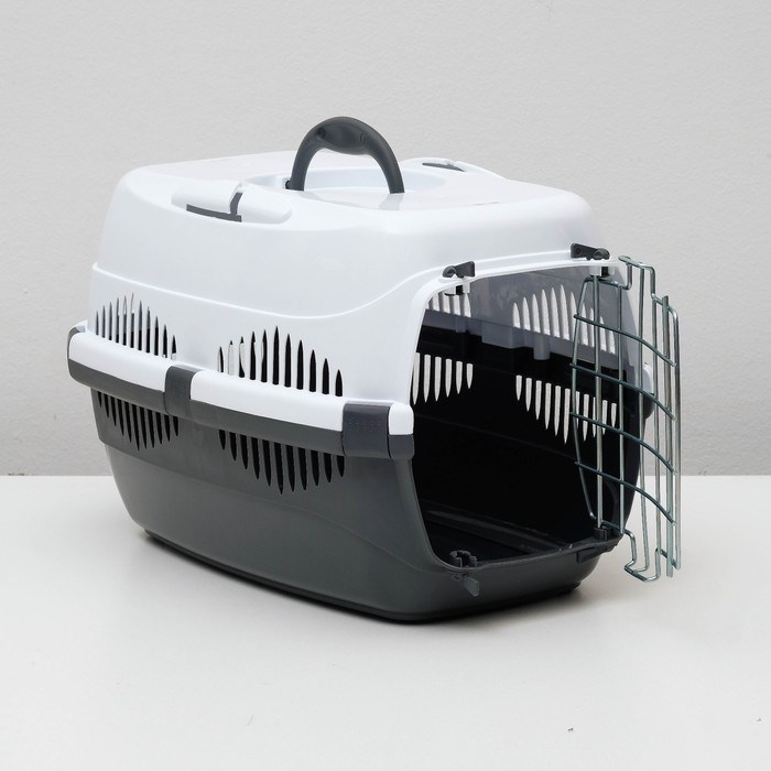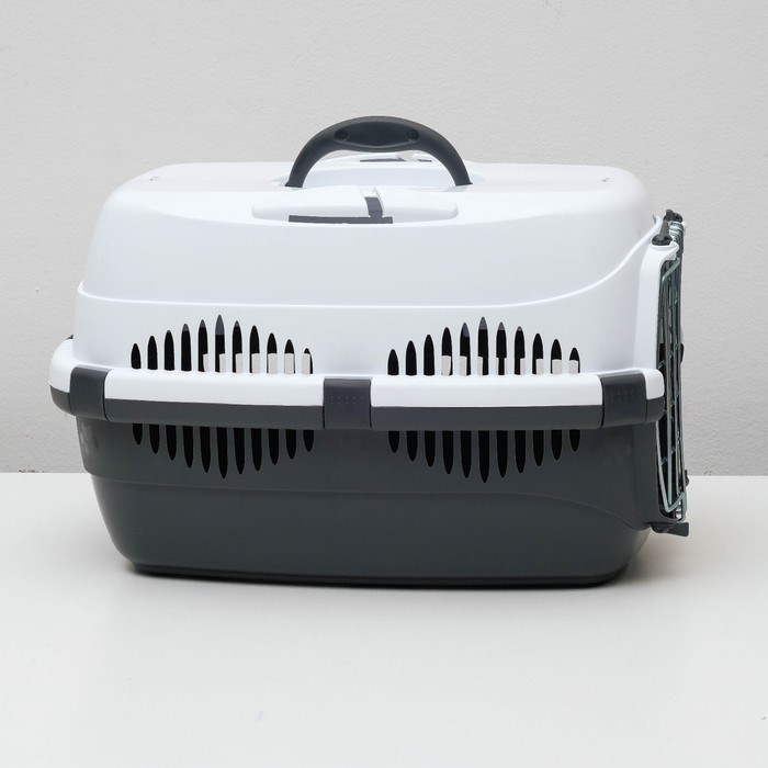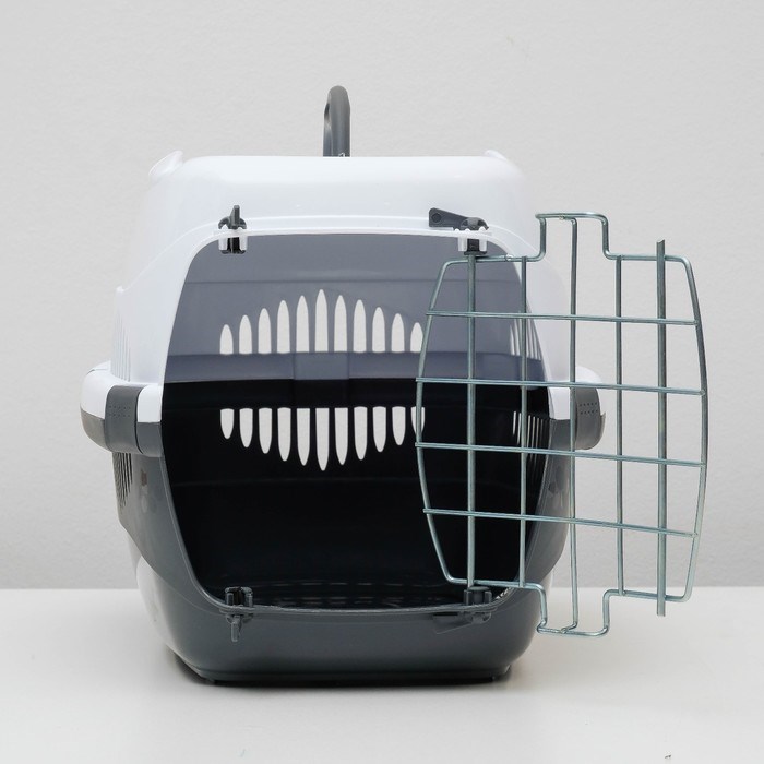 Переноска для животных до 9 кг "Пижон", металлическая дверь, 43 х 29 х 27,5 см, бело-серая