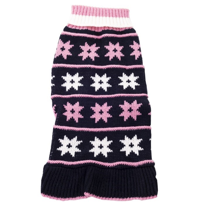 Платье вязаное "Цветочки", ДС 35 см, темно-синее с розовым