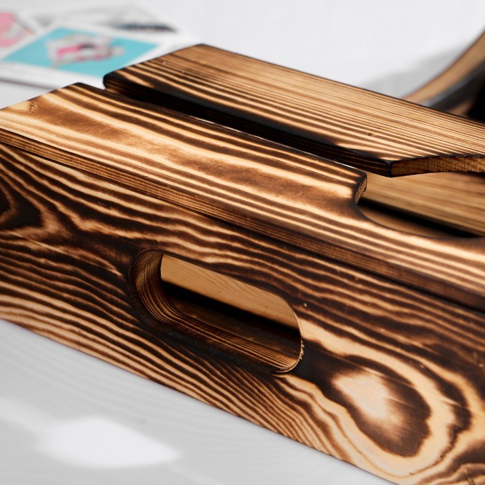 Поднос для вина под две бутылки, ручки-вырезы боковые, обожжённый, МАССИВ, 30×60 см