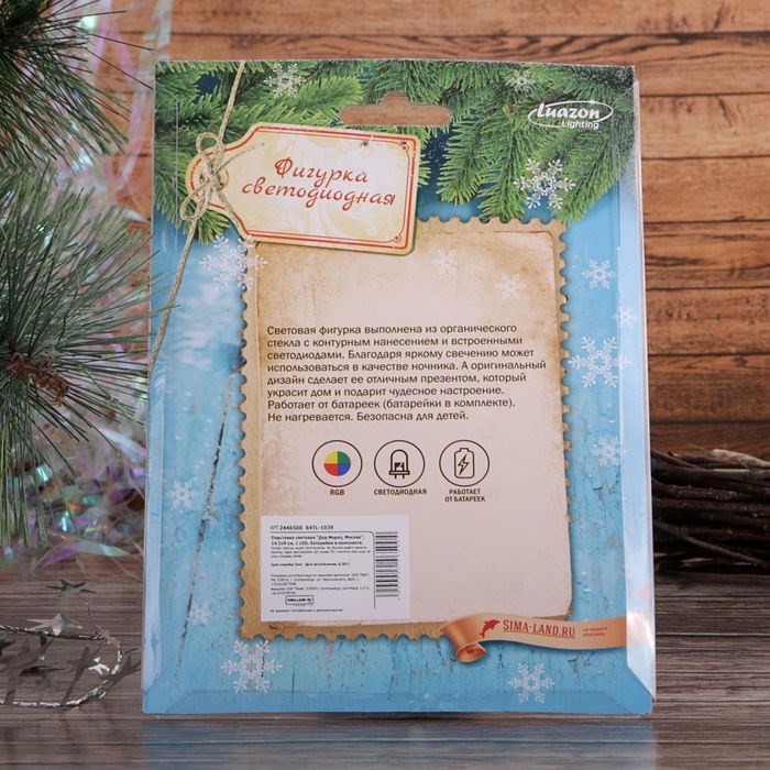 Подставка световая "Дед Мороз, Москва", 14.5х9 см, 1 LED, батарейки в комплекте, RGB микс