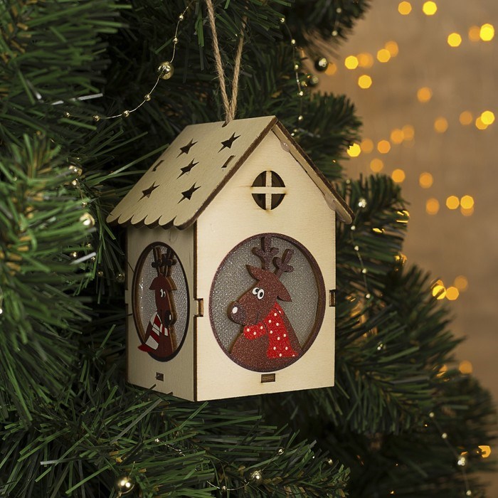 Подвеска световая "Домик и олень" (батарейки в комплекте), 11х7х7 см, 1 LED, RGB