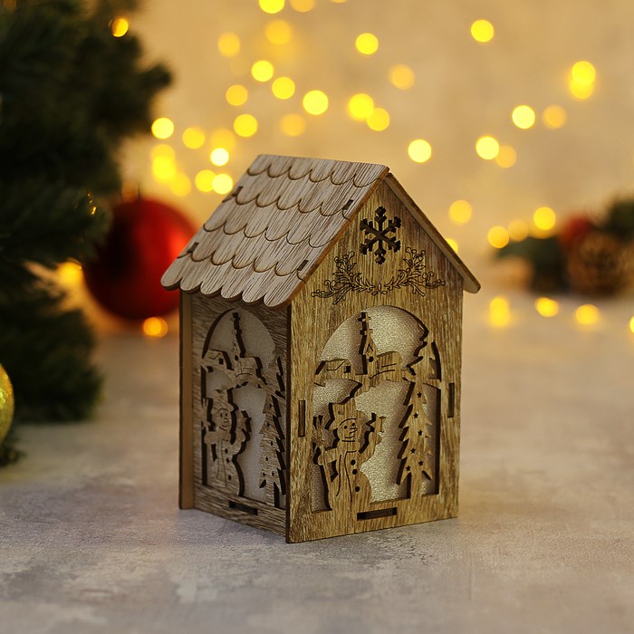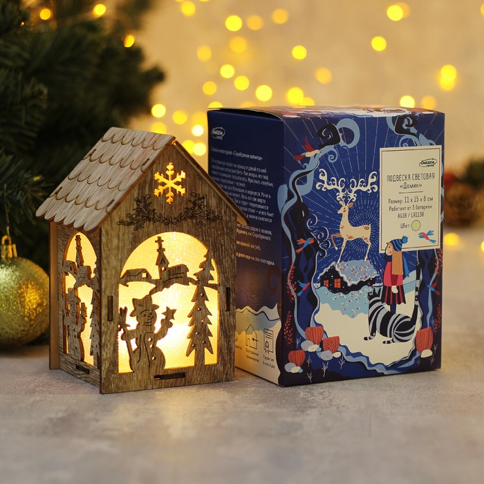Подвеска световая "Домик со Снеговиком", 11х15х8 см, 1 LED, бат.(в комп), серое окно,Т/БЕЛЫЙ