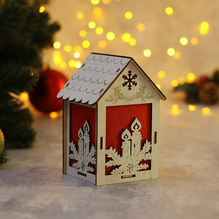 Подвеска световая "Домик со Свечами", 11х15х8 см, 1 LED, бат.(в комп), красное окно, Т/БЕЛЫЙ