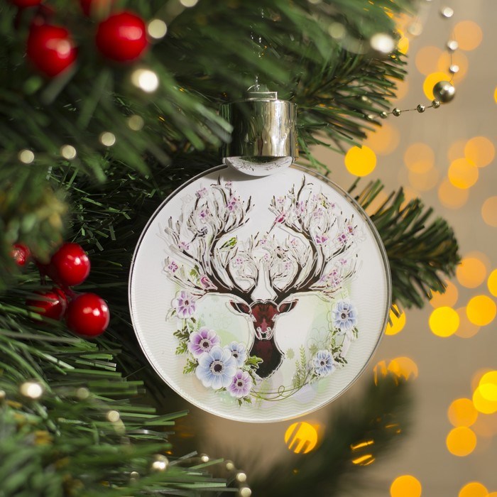 Подвеска световая с динамикой "Олень ветвистые рога" от батареек 2032 (в комплекте), БЕЛЫЙ
