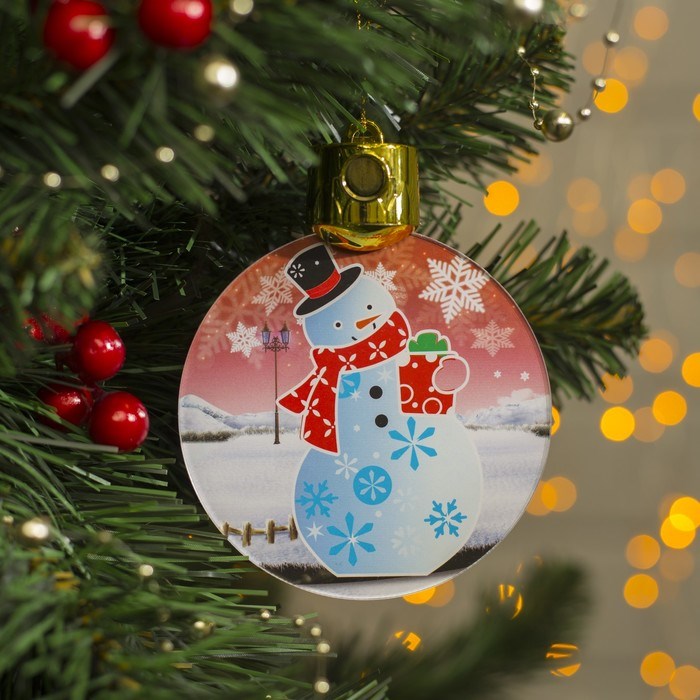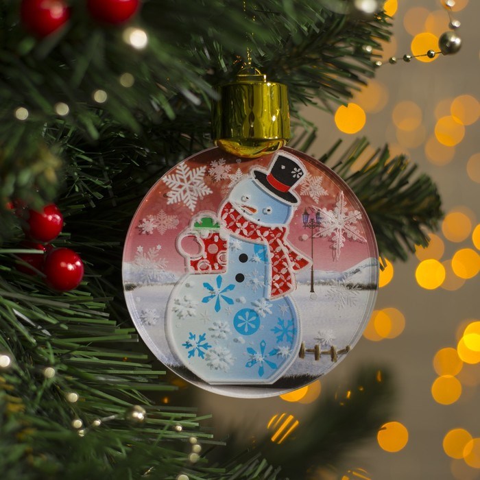 Подвеска световая с динамикой "Снеговик" от батареек 2032 (в комплекте), БЕЛЫЙ