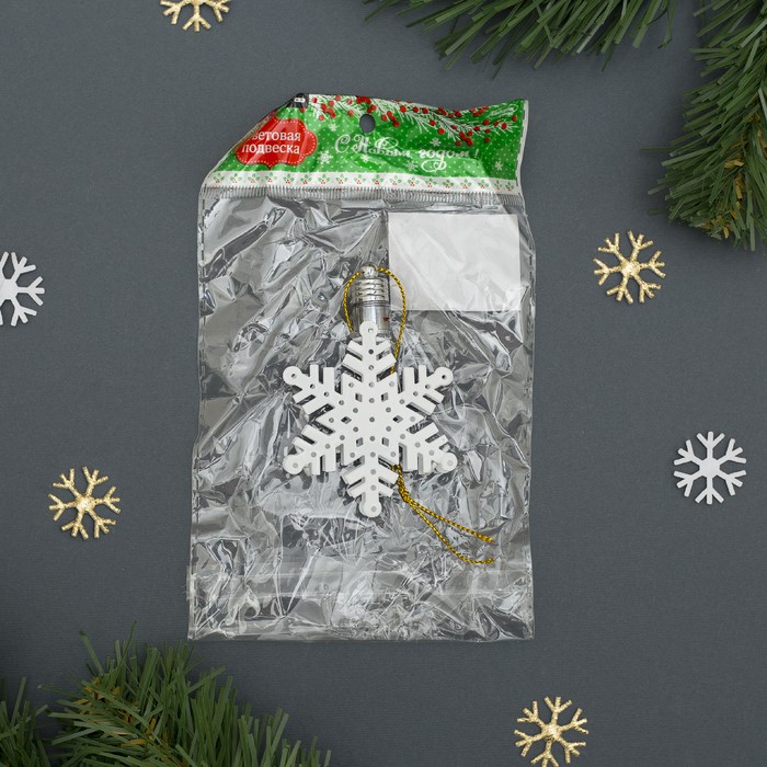 Подвеска световая "Снежинка белая" (батарейки в комплекте), d - 5см, 1 LED, RGB
