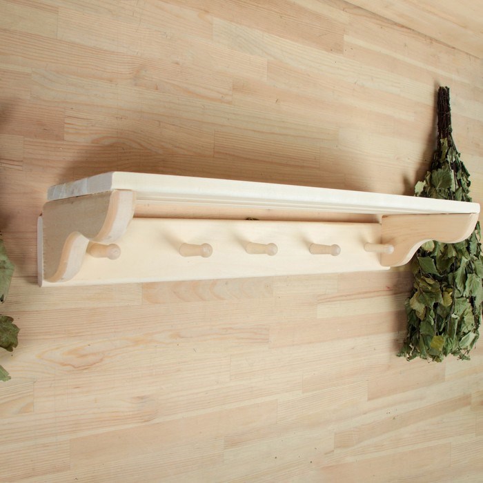 Полка большая с вешалкой 5 крючков 57х18х12см, липа "Добропаровъ"