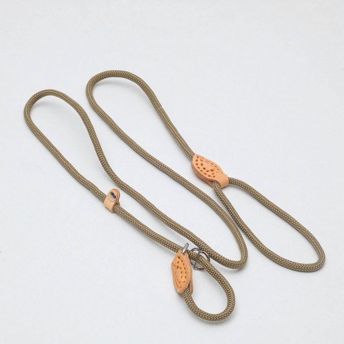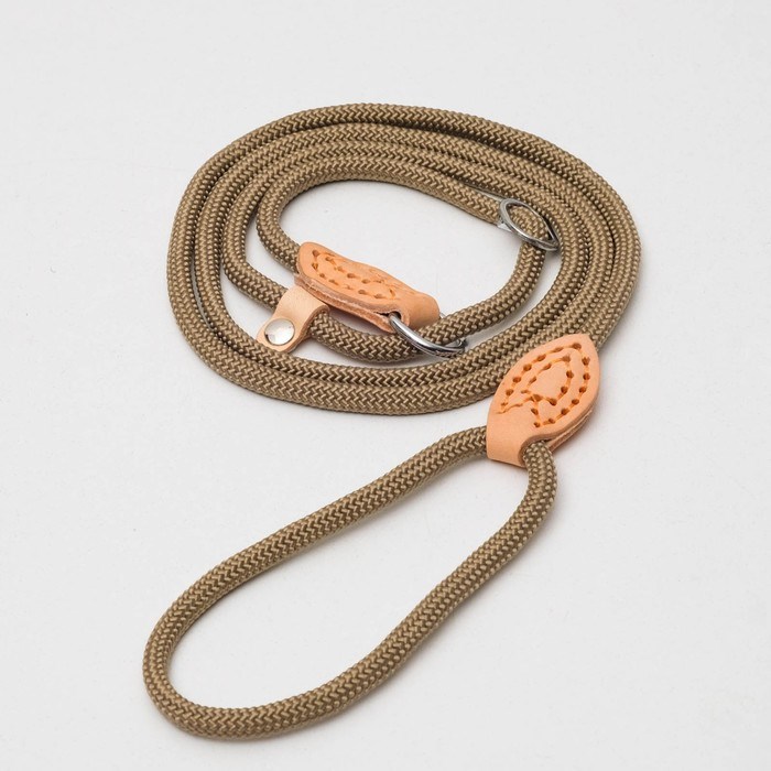 Поводок-удавка 145 см х 6 мм, полиэстер и натуральная кожа, бежевый