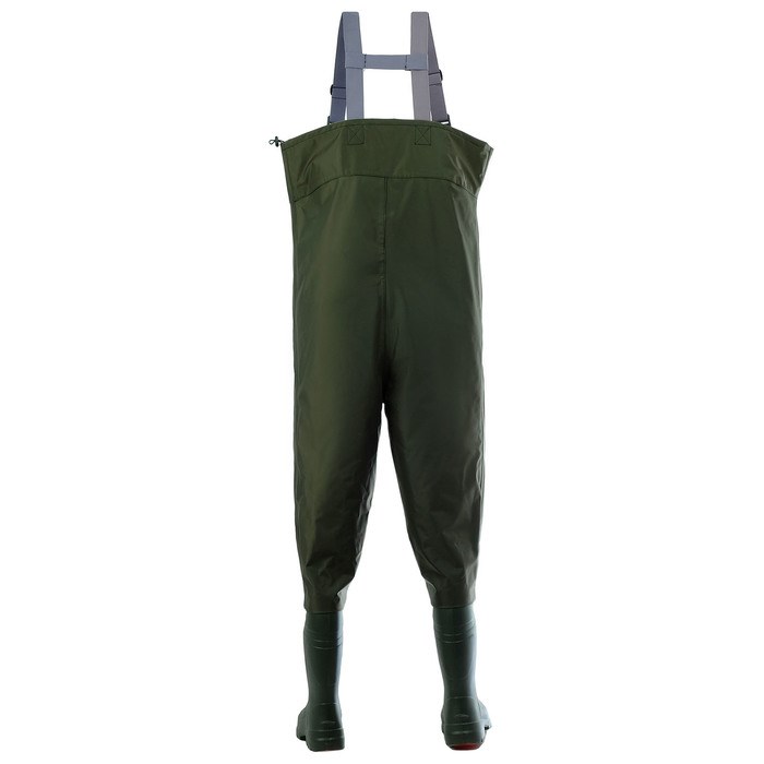 Рыбацкий полукомбинезон создан на базе сапог из TORVI универсал с подошвой из ТЭП, его верхняя часть выполнена из прочного нейлона с ПВХ покрытием.