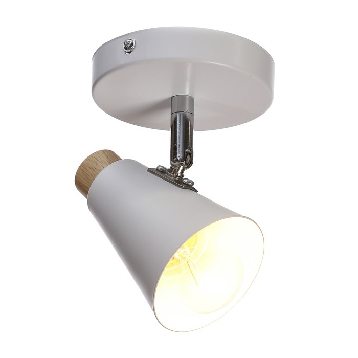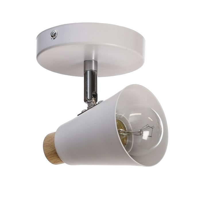 Спот выполнен в стиле модерн и декорирован натуральным деревом. Можно закрепить на потолке или стене. Регулируется на 160° по вертикали и на 360° по горизонтали. Хорошо сочетается по цвету с другими светильниками этой серии.