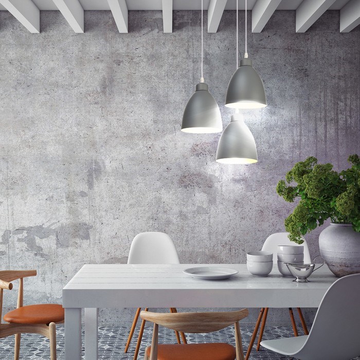 Подвесной светильник выполнен в стиле модерн. Изготовлен из металла, окрашен снаружи серым, внутри белым. Хорошо сочетается по цвету с другими светильниками этой серии .