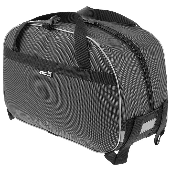 Course «Кантри-1» — удобная велосумка для перевозки личных вещей и инструментов. Крепится к багажнику четырьмя стропами с застёжками, имеет две прочные ручки для переноски и пластиковое дно-вкладыш, позволяющее сохранять форму. Застёгивается на молнию, обшита жёстким кантом по периметру с двух сторон.
