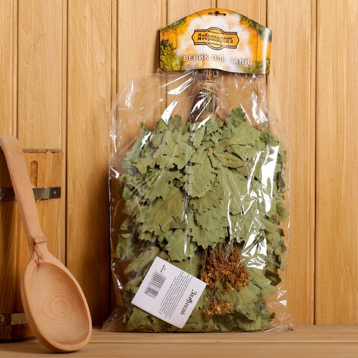Веник для бани ЭКСТРА из кавказского дуба со зверобоем