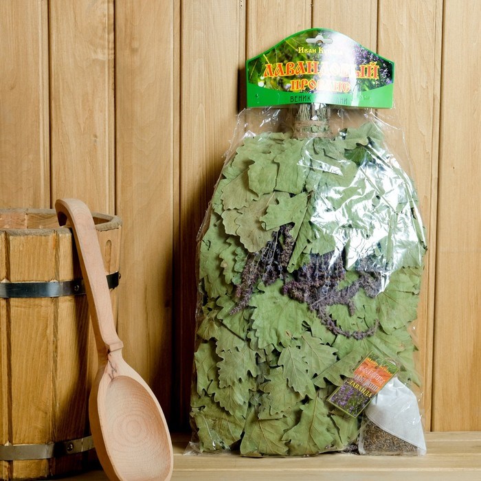 Веник для бани "Лавандовый прованс" из кавказского дуба с лавандой, в индивидуальной упаковк 45840