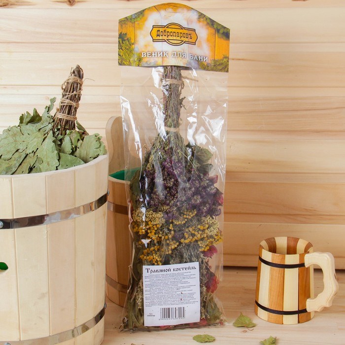 Веник для бани "Травяной коктейль" из донника, мяты, душицы, полыни и пижмы