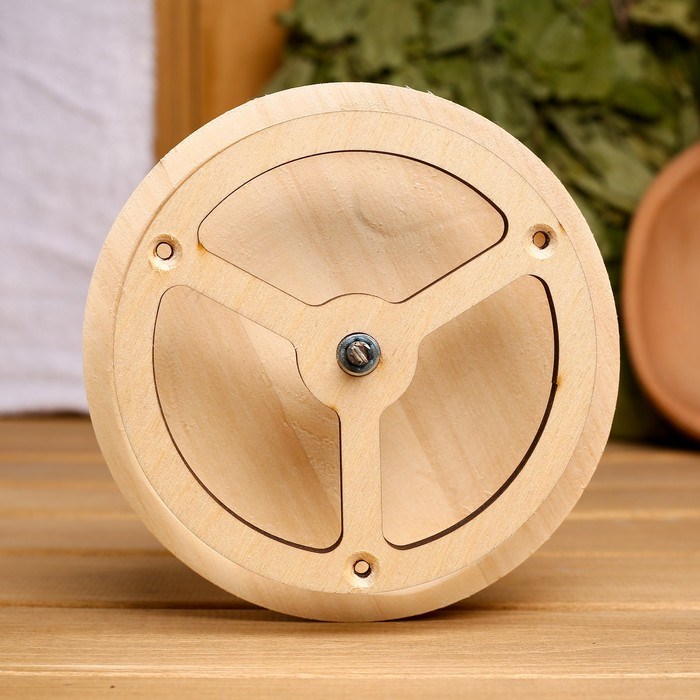 Чтобы получить настоящее удовольствие от банных процедур, не забудьте учесть все важные детали. Вентиляционный клапан из липы, D=10см, основание дерево — одна из них.