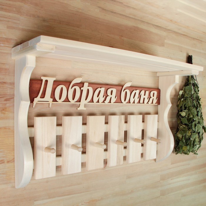 Чтобы получить настоящее удовольствие от водных процедур, не забудьте учесть все важные детали. Вешалка-полка "Добрая баня", 6 крючков, липа — одна из них.