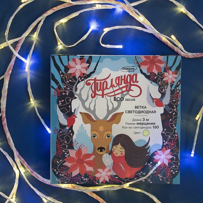 Ветка светодиодная, Д:3 м, Н.Б. LED-160/40, эффект мерцания, 220 В, ТЁПЛЫЙ БЕЛЫЙ